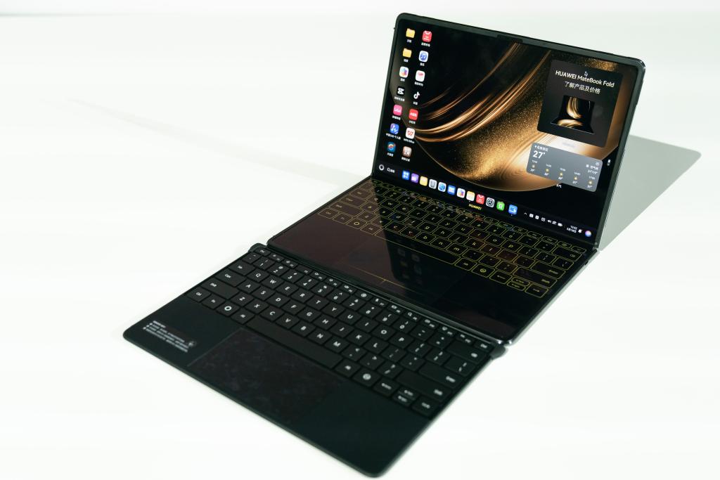 ??圖為5月19日發布的HUAWEI MateBook Fold非凡大師實體鍵盤與虛擬鍵盤。新華社記者 胥冰潔 攝